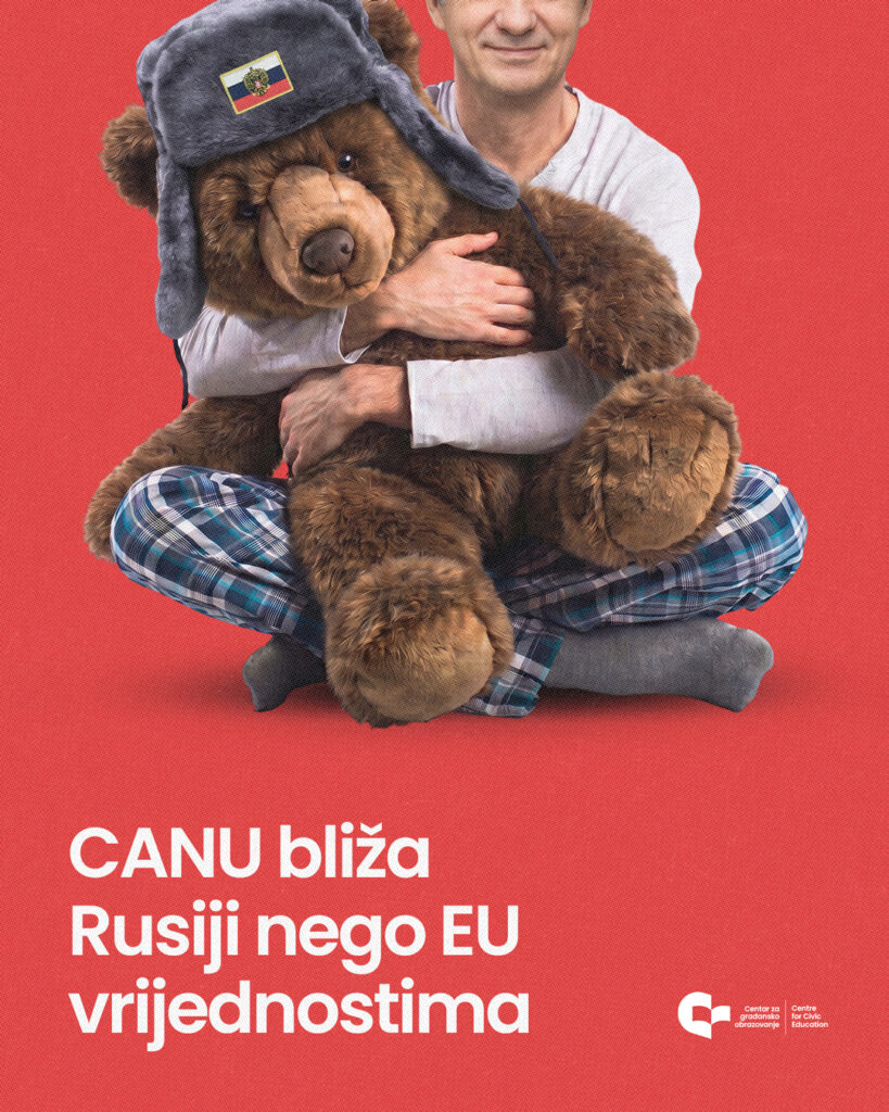 Takođe, CGO poziva i najviše javne funkcionere Vlade Crne Gore da se jasno odrede prema ovom pitanju, posebno imajući u vidu potencijalni uticaj ovih aktivnosti CANU na formalno usklađenu spoljnopolitičku poziciju Crne Gore prema Evropskoj uniji, kada je riječ o Rusiji.