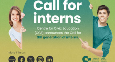 Centre for Civic Education (CCE) announces the Call for XIII generation of interns. Internship lasts for two months, from 17 October to 17 December 2025, with a possibility of extending cooperation on various grounds. We invite you to apply for following programmes: Democratisation and Europeanisation – 1 position Human Rights – 1 position Active Citizenship – 1 position… »
